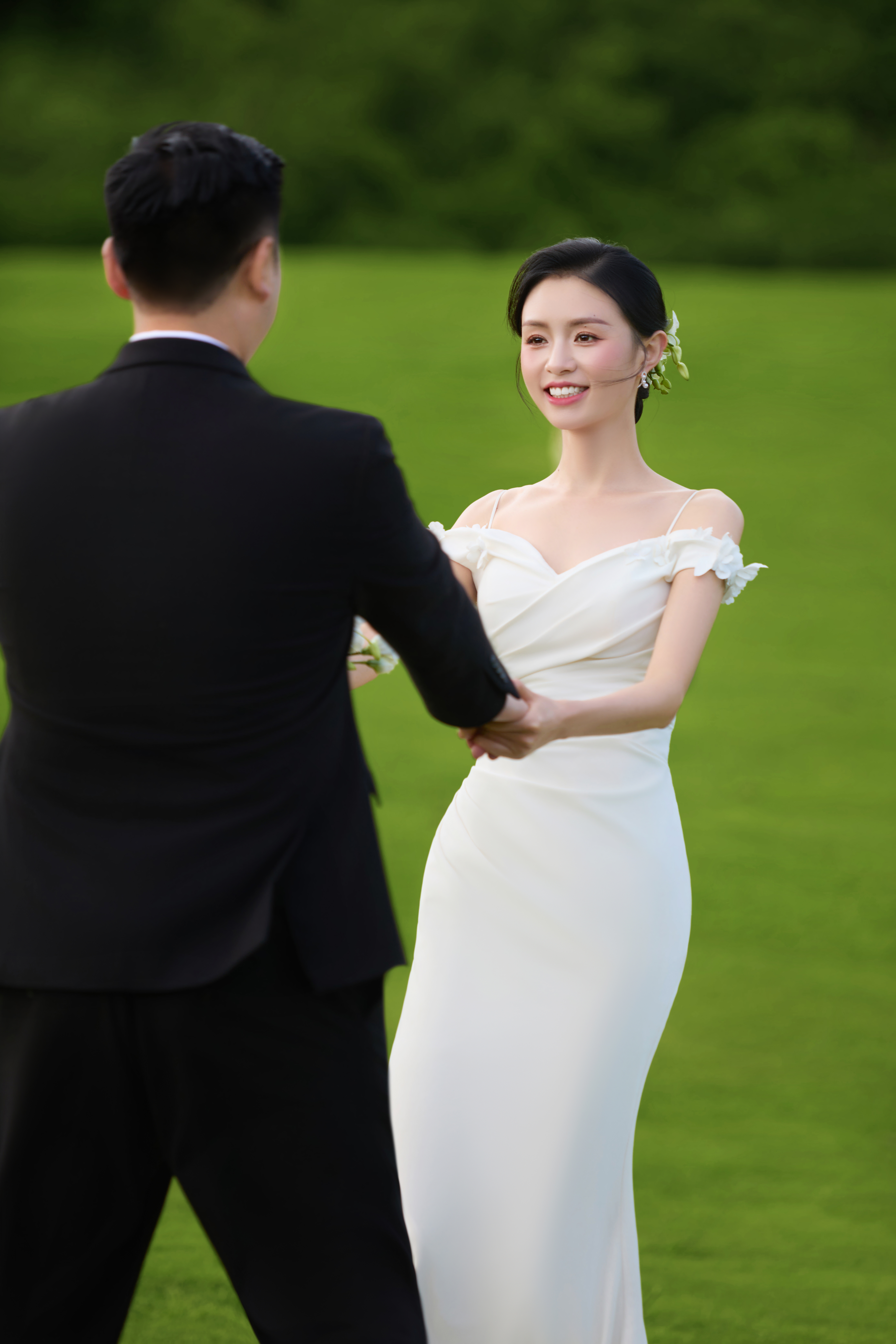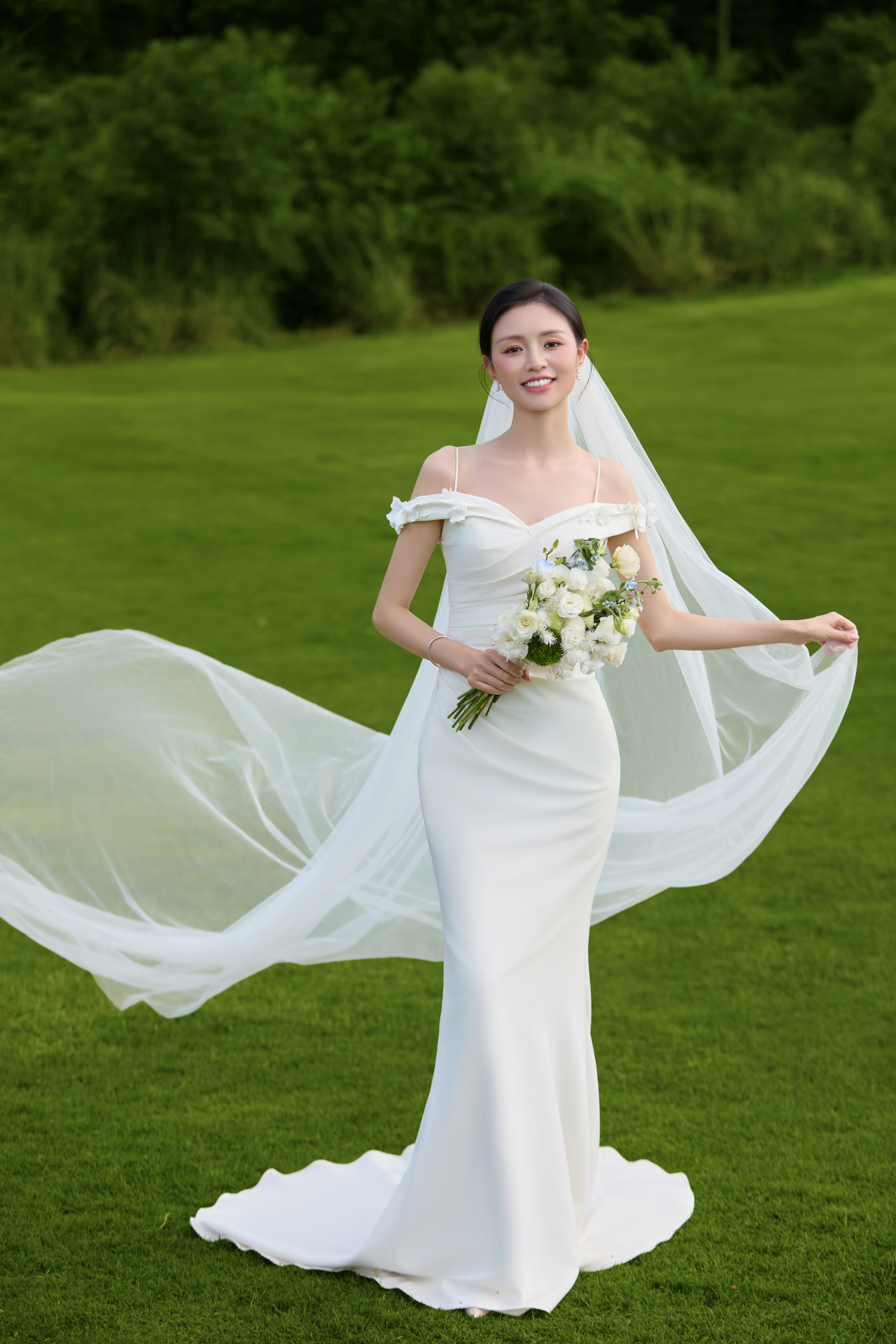 被这组婚纱照硬控10秒~蓝色绣球花真的好美