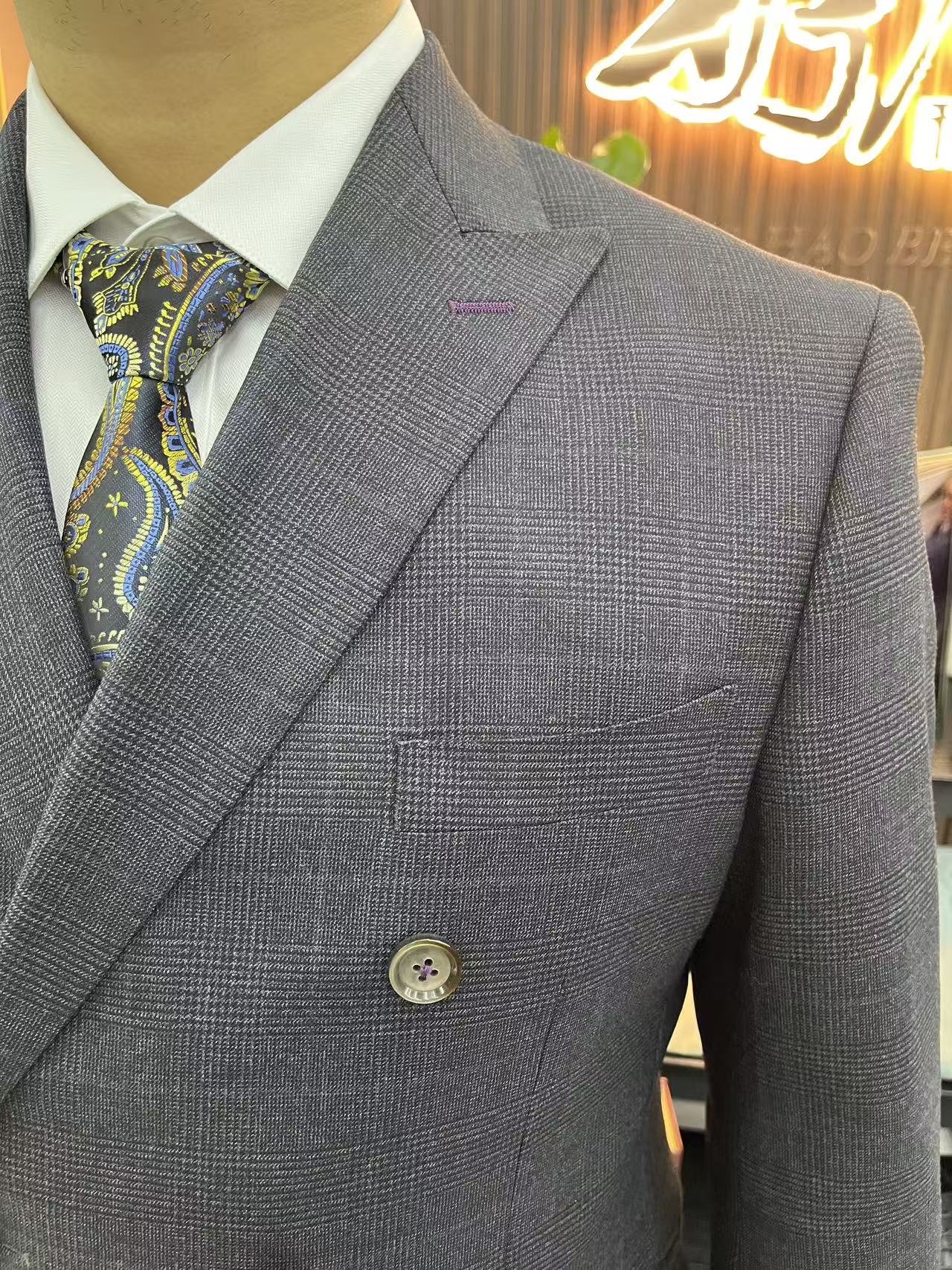 必须五星!在他家定制的灰黑色双排六扣二亲王格西装,简直是我的梦中情“装”。面料高级,格纹低调又有质感,双排六扣二的经典设计上身超有型,瞬间提升气场。版型剪裁精准,完美贴合身形,穿着舒适又显精神。店家服务专业又贴心,从选料到试穿都耐心指导。无论是商务场合还是正式晚宴,这套西装都能轻松驾驭,朋友都说超帅!已经推荐给身边的兄弟了,下次还来!