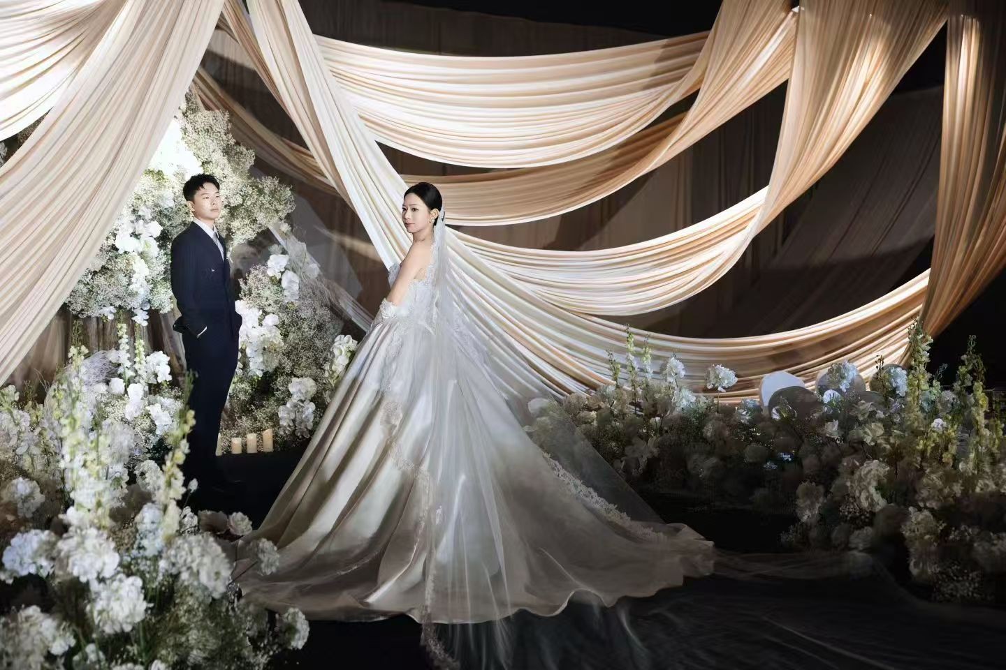 婚礼圆满落幕💒,回头必须夸夸这款婚纱礼服!上身比试穿时更惊艳,面料柔软亲肤不闷汗,刺绣花纹精致又不浮夸✨,裙摆垂感超棒,走路轻盈完全不拖沓。店员之前反复帮我调整尺寸、搭配头纱和配饰,细节超用心😘,婚礼当天拍照巨出片,亲戚朋友都夸气质好,性价比超高,承载了我对婚礼的所有美好期待,太满意啦!