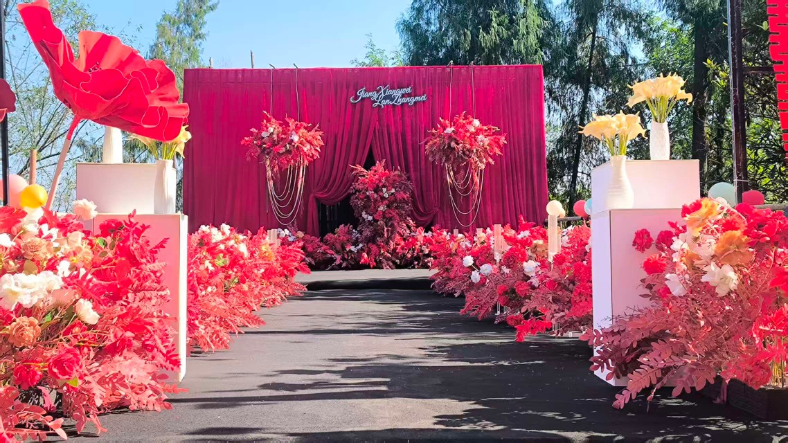 农村坝坝宴红色婚礼
