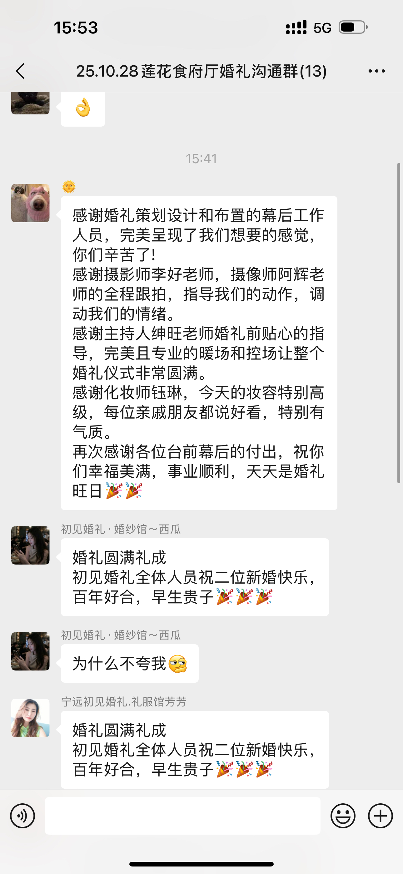 感谢二位的信任与选择 之前闺蜜结婚选择了宁远一家,做的很不满意,后面多家对比之后选择了我们初见婚礼,心里也是很担心,好在最后呈现出来的效果是自己想要的,通过团队热情的服务也给出了大大的好评