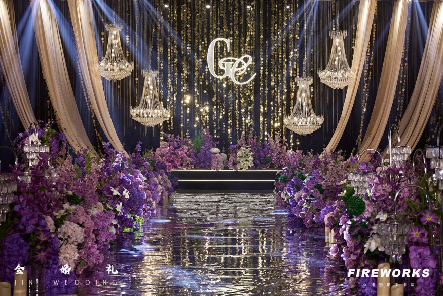 紫纱轻垂,浪漫婚典静谧开启