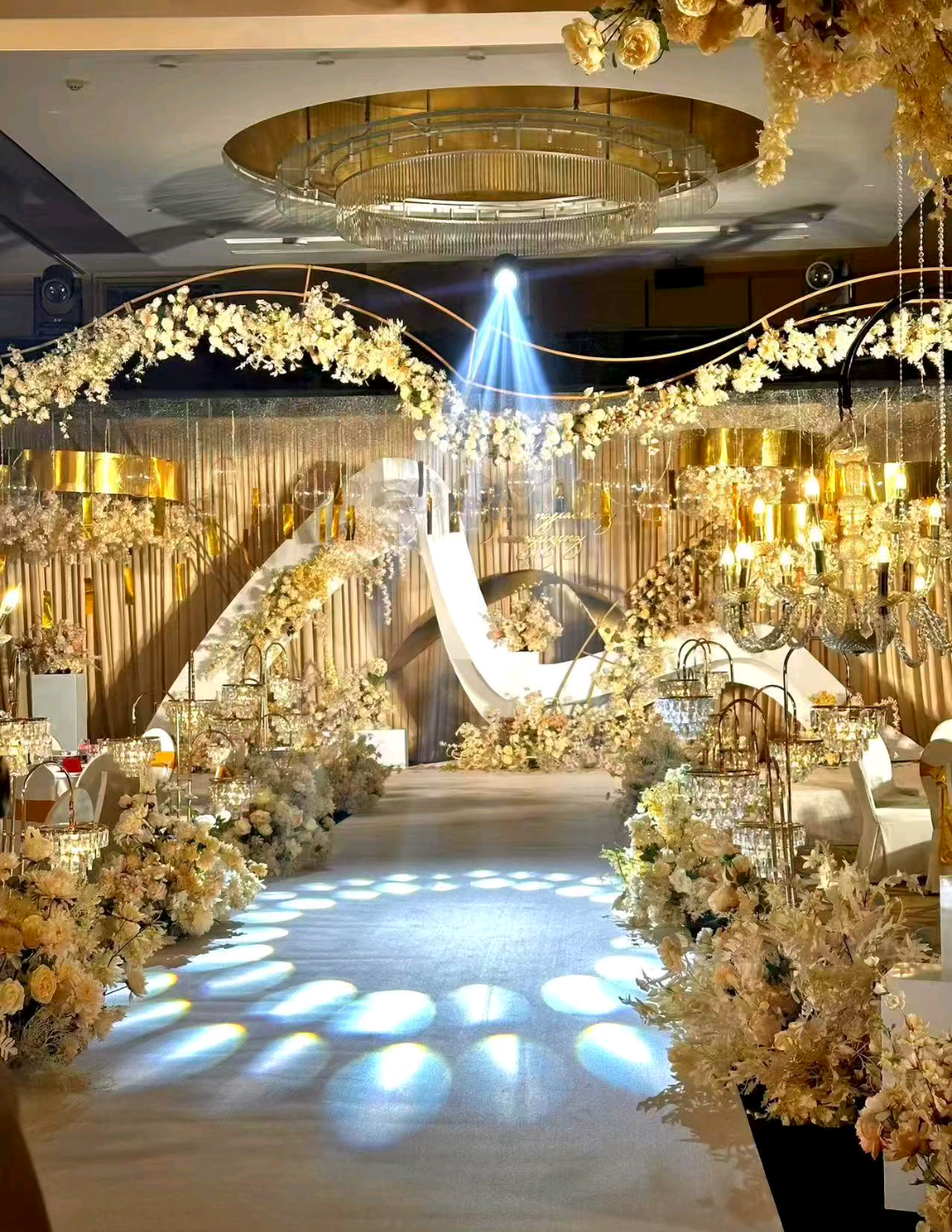 蓝色高级全场吊顶精致婚礼策划