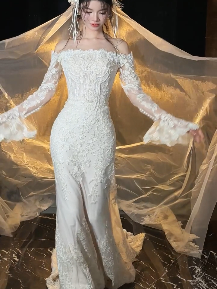 好温柔的蕾丝鱼尾婚纱